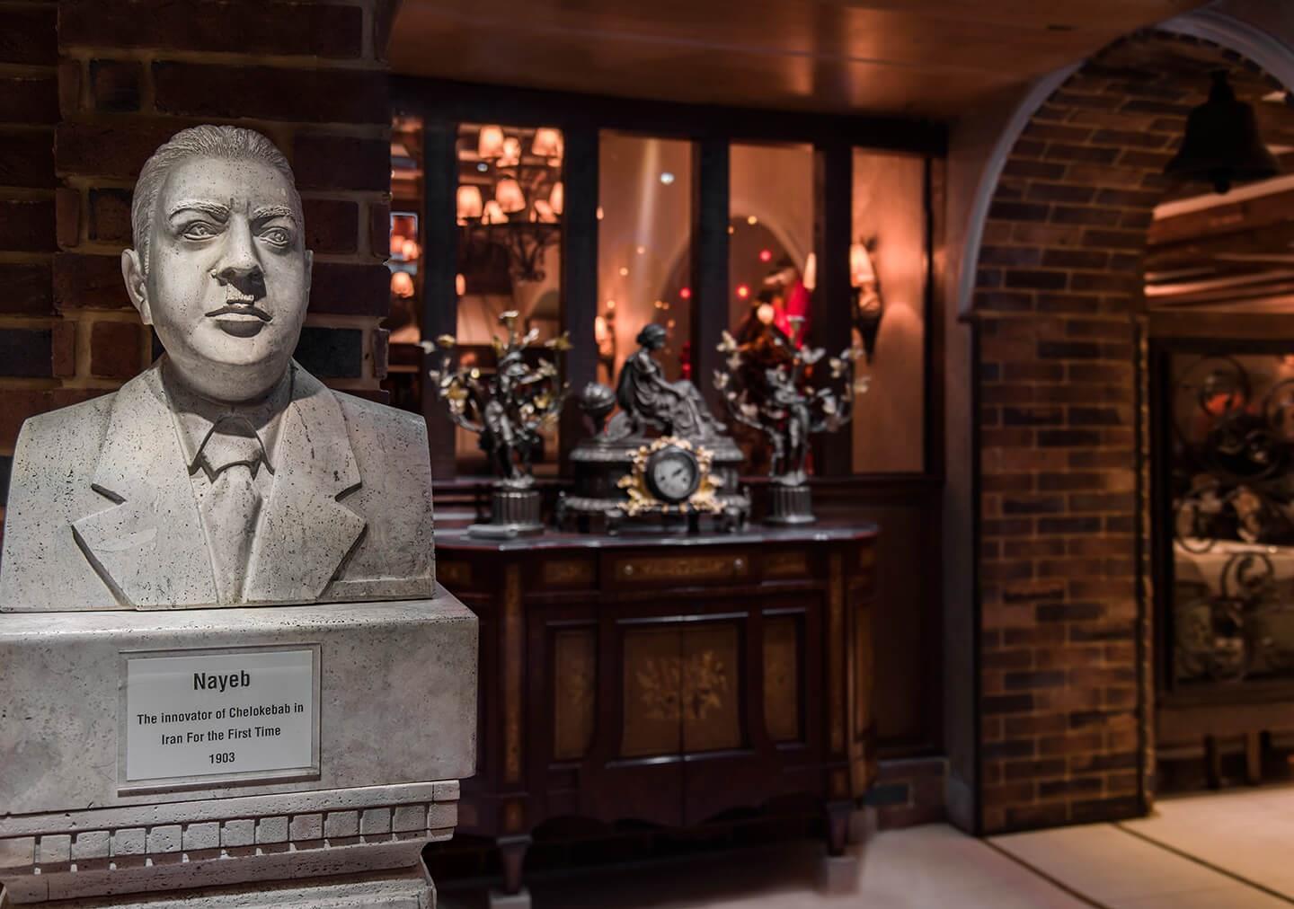 موسس اولین چلوکبابی در ایران نایب غلامحسین (نایب بزرگ ) در سال 1254 همراه خانواده به تهران مهاجرت كرد ،حمام ابتدای بازار صحاف ها را خرید و خزینه هایش را پر كرد ، سالن بزرگ حمام با فرش های زر بفت مفروش شد تا بازاری ها برای اولین بار تركیب برنج ،كره و كباب را تجربه كنند .غذای ابداعی نایب چنان اهمیتی یافت كه امروزه چلو كباب غذای ملی و نام نایب یك برند برتر در صنایع غذایی است.